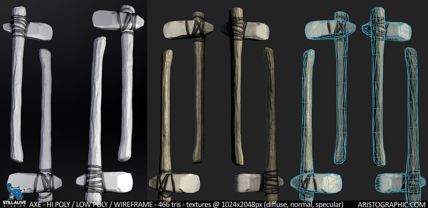 • Modeling, UVW unwrap, baking maps and PBR texturing;